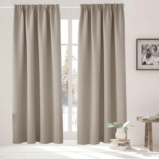 larson luxe geweven blackout gordijn met haken 1 5 meter taupe bol com