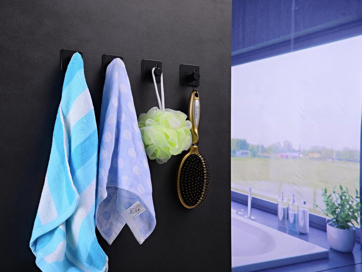 handdoekhaakjes badkamer zelfklevend 4 stuks rvs zwart bol com
