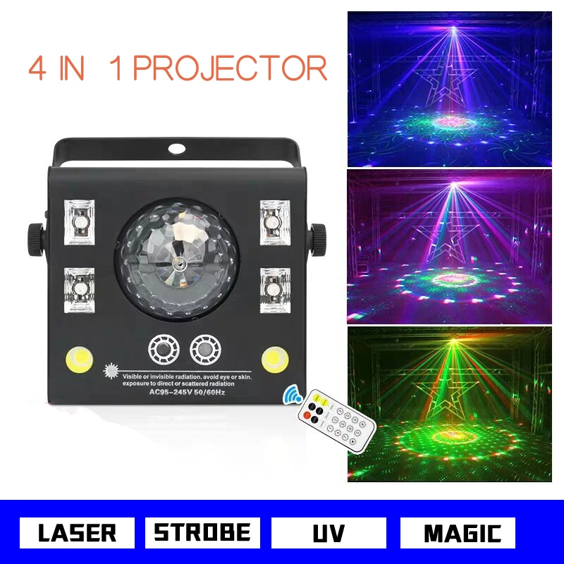 4 in 1 led stage projector strobe flash magic crystal ball uv laser effect beam spot for dj disco remote dmx music mode lamp stage lighting effect aliexpress