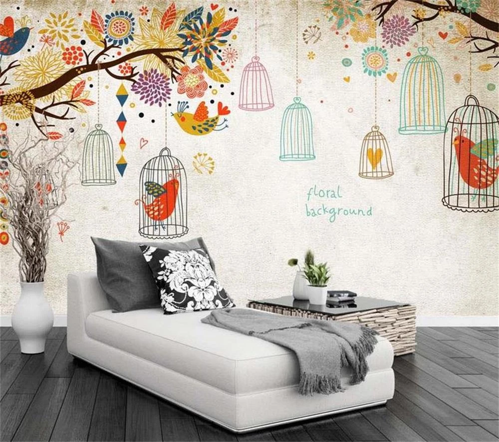 3d behang custom foto behang kleine verse takken van bos vogelkooi retro tv bank slaapkamer ktv bar hotel woonkamer 3d wallpaper photo wallpapercustom photo wallpaper aliexpress