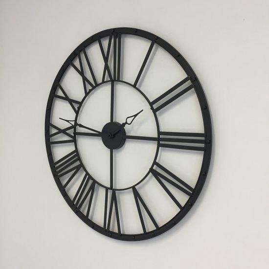 metalen klok o70cm zwart vintage retro romeinse cijfers grote metalen bol com