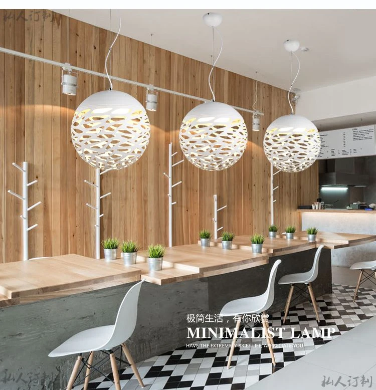 enkele kop led hanglamp moderne ronde bal vorm wit eetkamer creatieve verlichting ijzer laser cut boorgat geschilderd lighting modern led pendant lightpendant light modern aliexpress