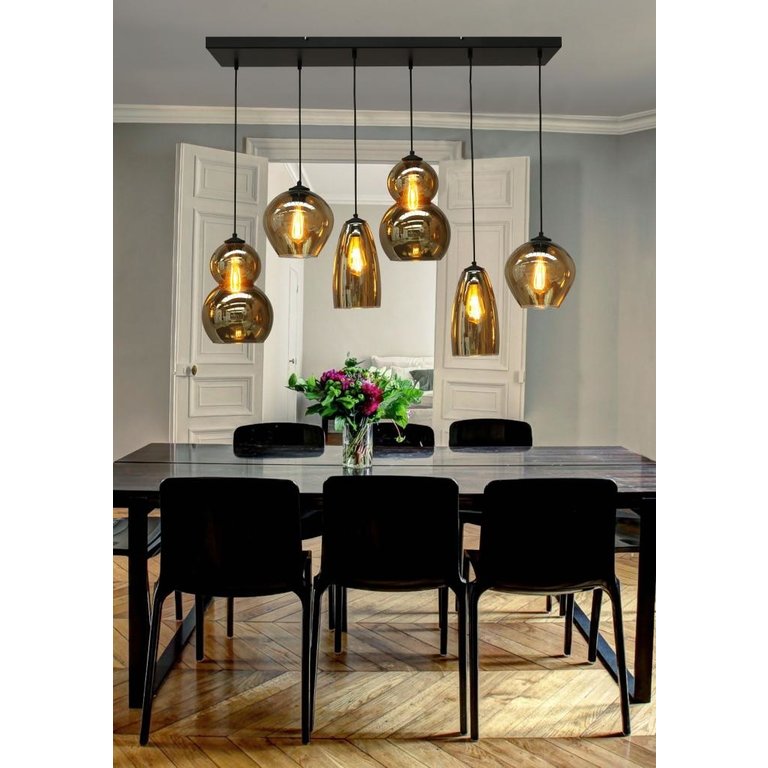 hanglamp quinto smoke 6lichts 100x25cm van den heuvel verlichting