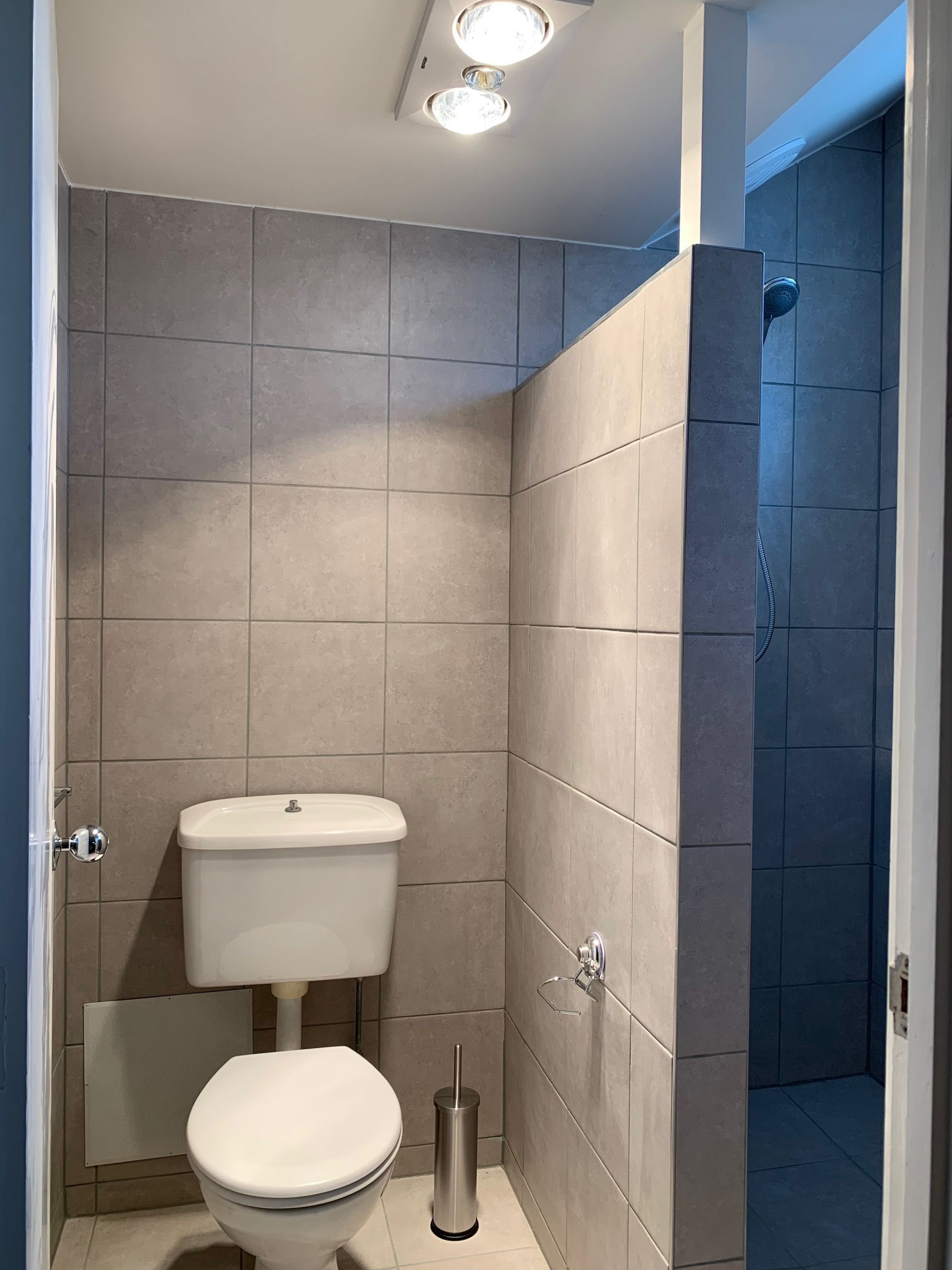 hangpot van wisa wandtoiletborstel van geesa led verlichting achter koof koof beplakt met pvc stroken toilet beneden badkamer toilet