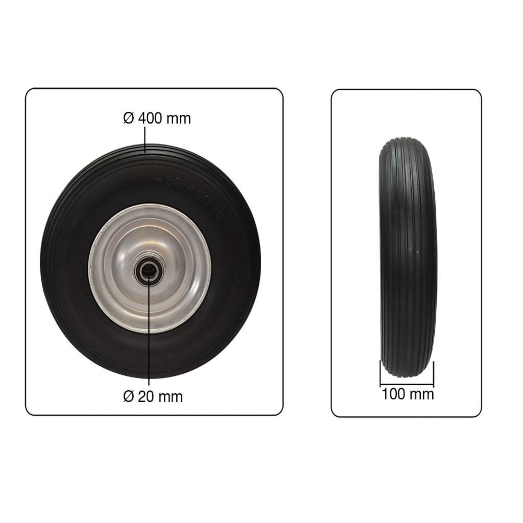 fort kruiwagenwiel wiel o 400x130 mm kunststof velg bouwmaat