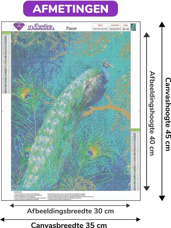 diamond painting pauw 30x40cm afbeelding formaat vierkante steentjes volledig bol com