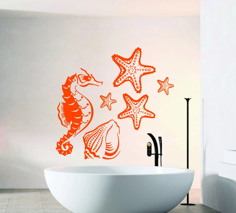 muurstickers zee paard sticker schelpen decal sterren badkamer decor muursticker interieur vinyl art mural behang vinyl bathroom wallpaper wallpaper machinewallpaper cheap aliexpress