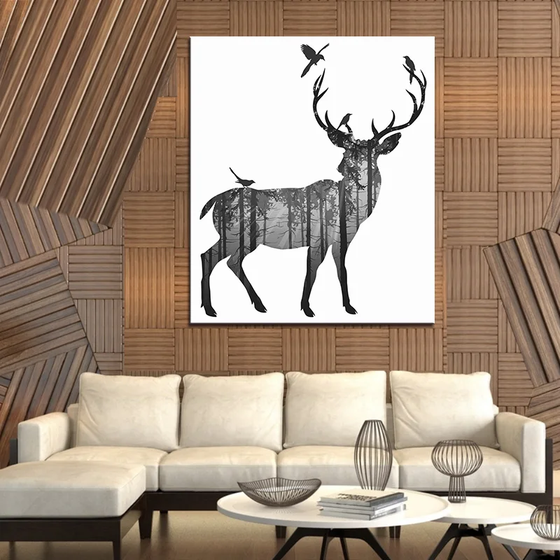 1 stks herten met vogel canvas print schilderij moderne grijs abstract silhouet forest animal wall art foto hor home hotel decor art pictures wall art picturewall art aliexpress